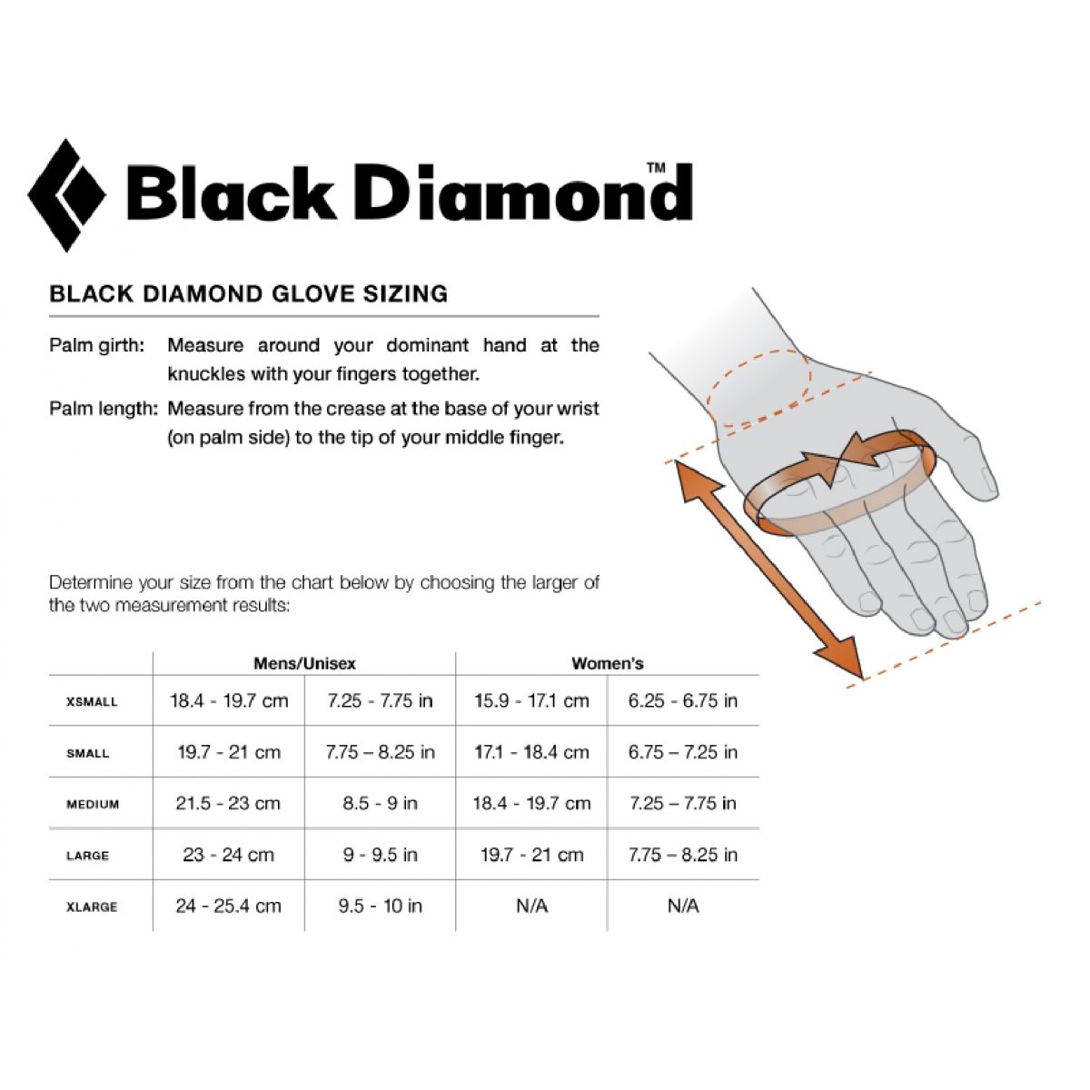 Tabel marimi Black Diamond