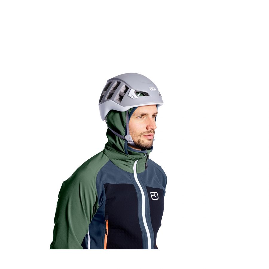 Materialul principal folosit la jacheta Ortovox Col Becchei este Merino Naturetec Light, cu lana merino tasmaniana la interior si poliamida protectiva la exterior. Aceasta combinatie permite o buna respirabilitate, in timp ce tesatura stransa este rezistenta la apa si vant. La interior, lana merino ofera un management perfect a umezelii si temperaturii. Fibrele naturale transporta umezeala la exterior. Jacheta Ortovox Col Becchei, cu un croi atletic, garanteaza o buna libertate de miscare, gratie materialului elastic. Dispune de o gluga ce permite utilizarea castii de protectie in activitatile alpine. Fermoarele de la subbrat si piept, permit ventilarea corpului in timpul ascensiunilor. Tivul elastic protejeaza de frig si zapada. Buzunarul de la umar permite stocarea articolelor mici.