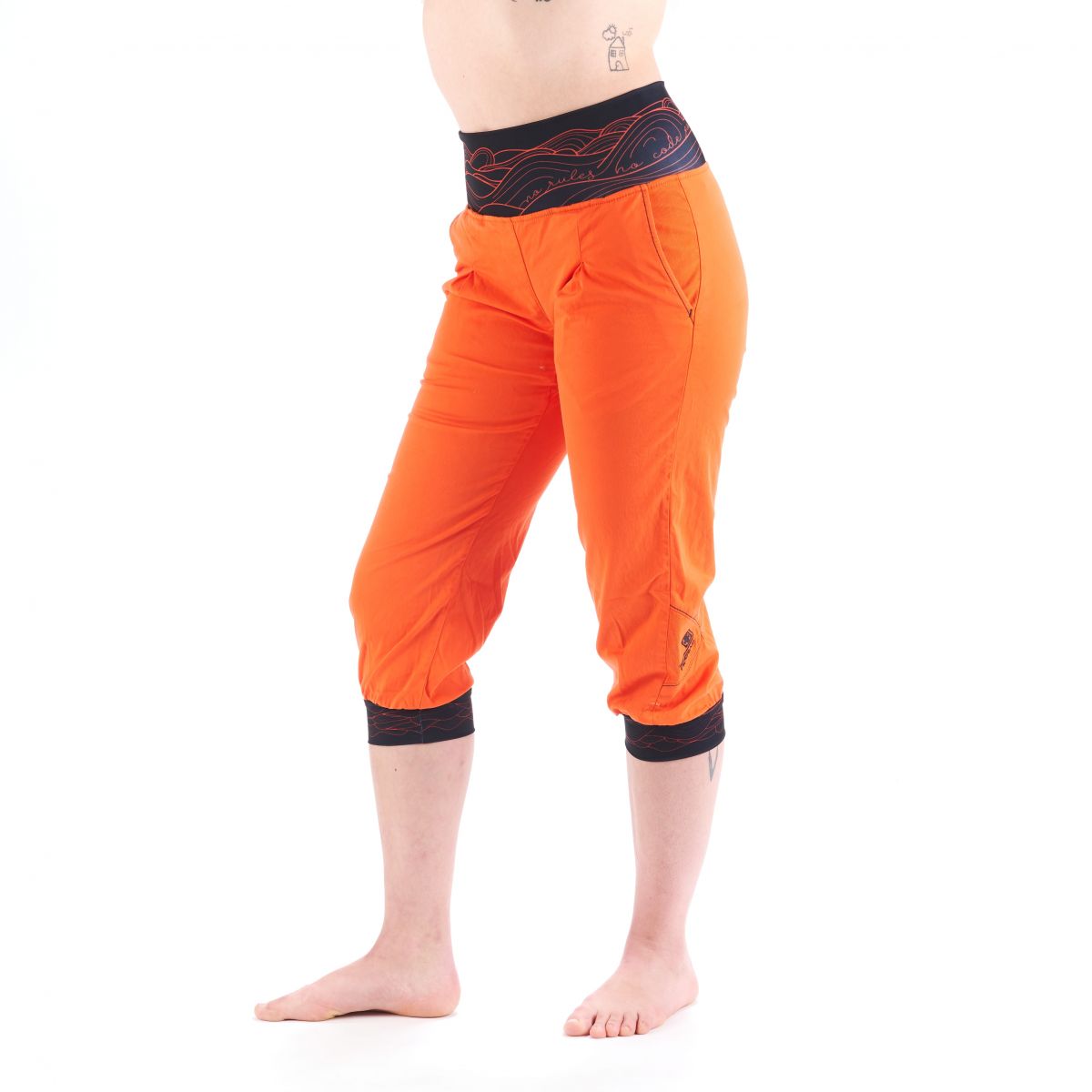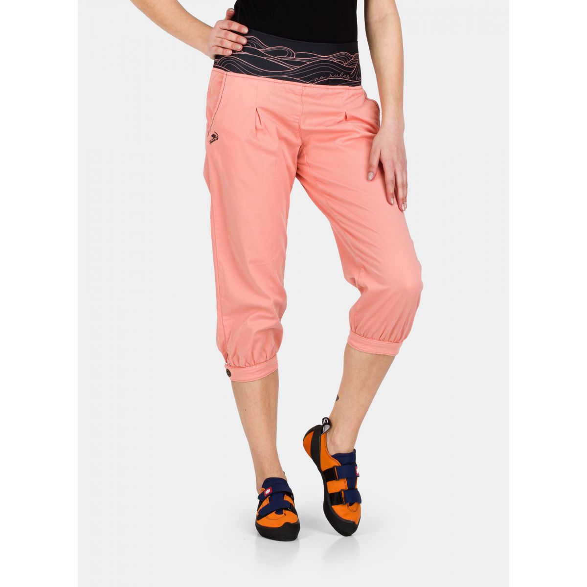 Pantalonii de escalada Nograd Dune 3/4, confectionati din fibra de bumbac in amestec cu elastan, responsabila pentru ventilare. Prevazuti in talie cu o banda lata, elastica. Inchidere cu nasturi tip capsa, in partea de jos, sub genunchi.